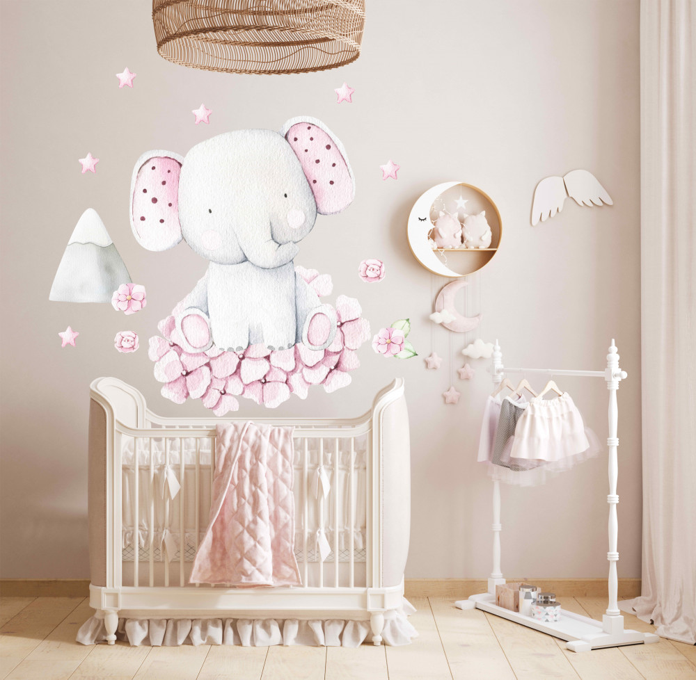 Gyönyörű akvarell hatású falmatrica, mellyel könnyen és gyorsan egyedi hangulatot varázsolhatsz gyermeked szobájába!